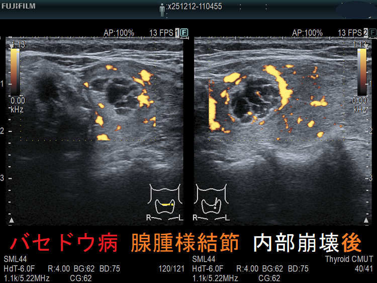 腺腫様甲状腺腫(腺腫様結節)超音波(エコー)画像 [日本甲状腺学会認定 甲状腺専門医 橋本病 バセドウ病 甲状腺機能低下症 長崎甲状腺クリニック 大阪]
