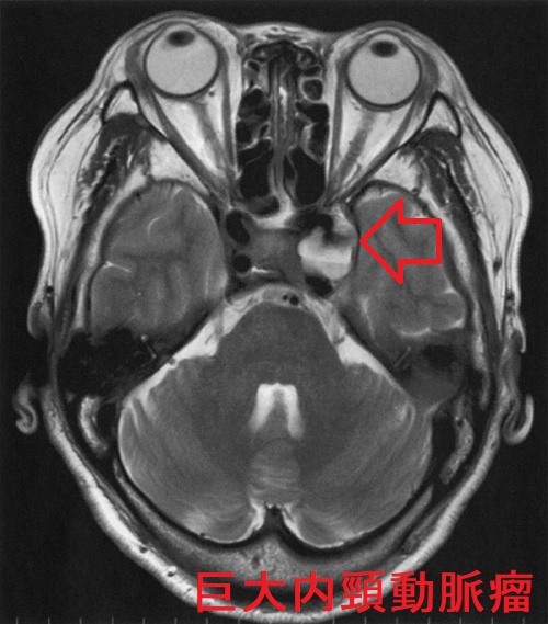 内頸動脈瘤も内頸動脈-後交通動脈瘤と同じく、動眼神経麻痺を起こします。さらには、滑車神経・外転神経麻痺による複視や三叉神経第1枝・第2枝の圧迫による顔面の知覚障害を伴う場合も。