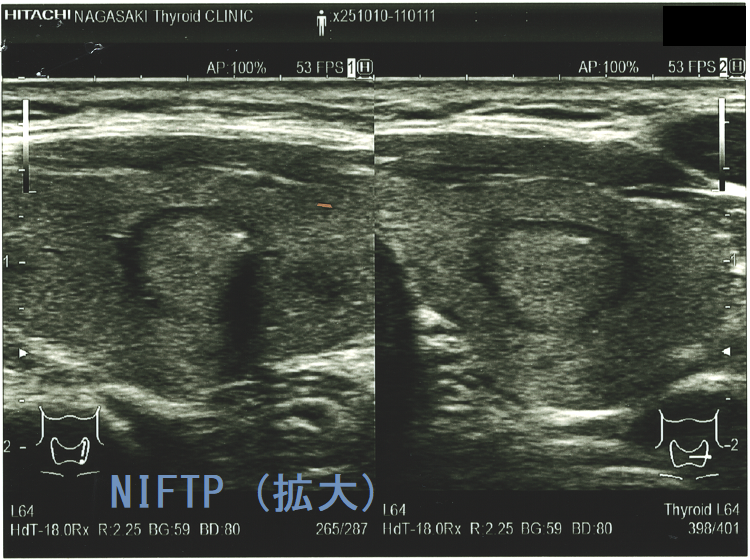 Non-invasive follicular thyroid neoplasm with papillary-like nuclear features (NIFTP) 超音波(エコー)画像;見かけは濾胞型甲状腺乳頭癌、濾胞性腫瘍と鑑別できまない