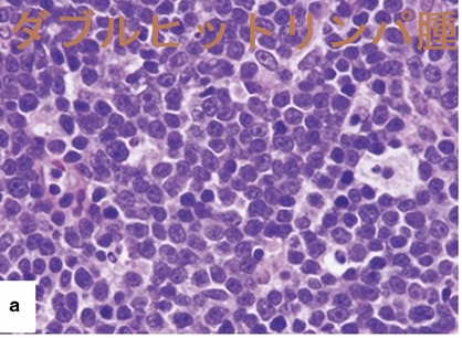 ダブルヒットリンパ腫のHE組織像は、びまん性大細胞型B細胞リンパ腫(DLBCL)と同じ。[組織像、Mod Pathol. 2015 Feb;28(2):208-17. ]