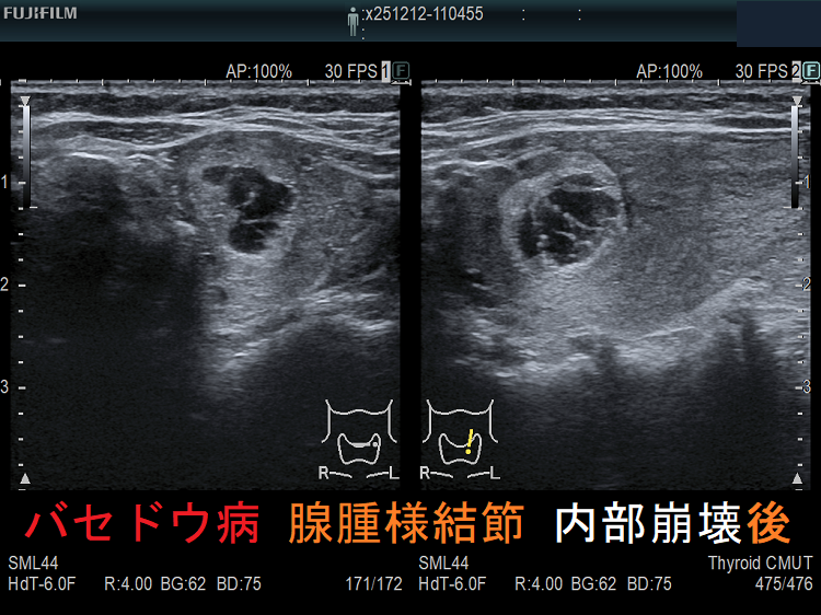 腺腫様甲状腺腫(腺腫様結節)超音波(エコー)画像 [日本甲状腺学会認定 甲状腺専門医 橋本病 バセドウ病 甲状腺機能低下症 長崎甲状腺クリニック 大阪]