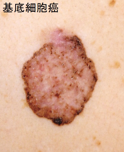 - 良性の黒子(ホクロ)と比べると、やや大きめで、形がいびつ、色合いがマダラです。