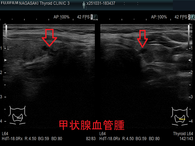 穿刺細胞診の注意(穿刺時出血,甲状腺血管腫)[橋本病 バセドウ病 甲状腺超音波エコー検査 長崎甲状腺クリニック 大阪]