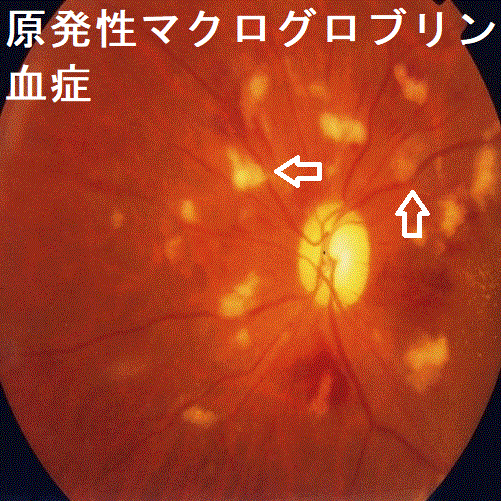 原発性マクログロブリン血症(Waldenström マクログロブリン血症)では、過粘稠症候群、網膜静脈の怒張・ねじれた網膜静脈(ソーセージ様、ソーセージリンク様)、アミロイドーシス(甲状腺アミロイドーシスも)を引きおこします。[Radiology. 2017 Aug;284(2):597-602. ]